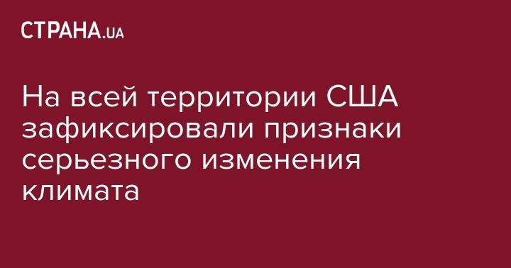 Найдены признаки изменения климата во всех частях США. Исследователи, в частности, установили, что климат на западе, юго-западе и юго-востоке страны становится суше, а в районе южной равнинной части и на Среднем Западе - более влажным. В Техасе в 20 раз участились экстремальные погодные явления. Согласно докладу, температура поверхности земли и воздуха на Аляске и в Арктике растет в два раза быстрее, чем в среднем по миру.
