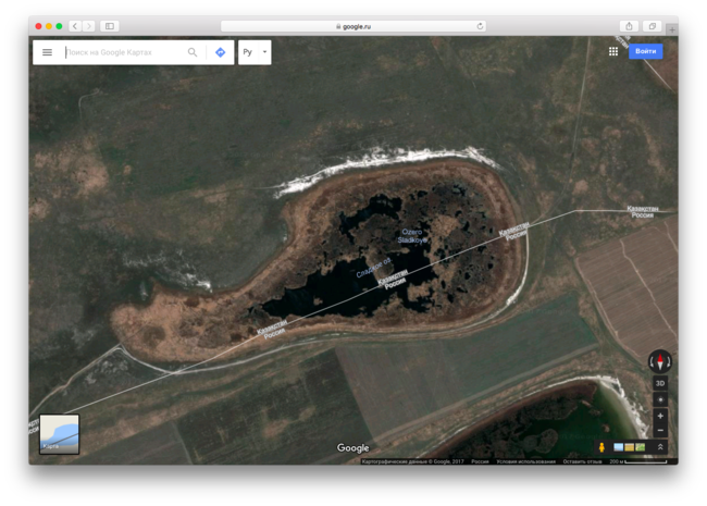 Скриншот "старой" границы России и Казахстана с Google Maps, фото: meduza.io