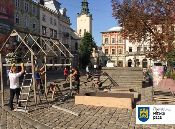 Киношники обосновались на площади Рынок. Кроме нее для съемок фильма также будут задействованы еще пл. Музейная, двор Собора Святого Юра, ул. Армянская и Армянский дворик.
