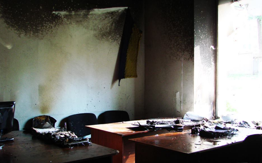 Он уточнил, что неизвестные перелезли через забор, проникли на территорию учреждения и бросили два коктейля Молотова в кабинет, где находятся рабочие места сотрудников предприятия.