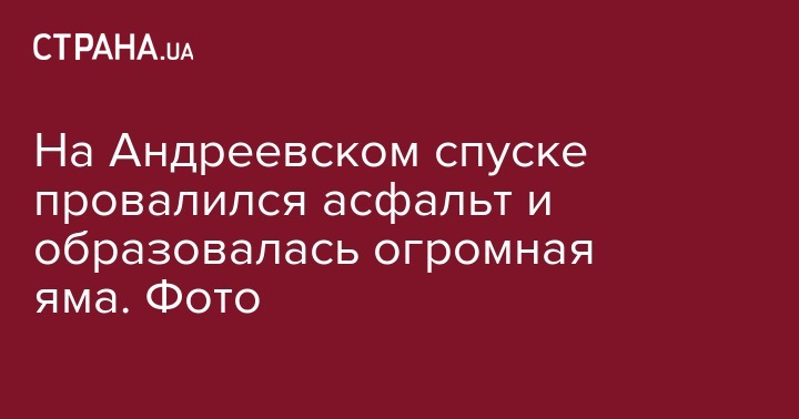 На Андреевском спуске провалился асфальт и образовалась огромная яма. Фото
