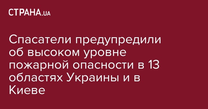 Государственная служба по чрезвычайным ситуациям (ГосЧС) предупреждает о чрезвычайной пожарной опасности в 13 областях и Киеве 17-22 августа и Ровенской области 19-22 августа.