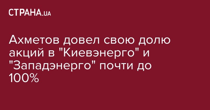 Ахметов довел свою долю акций в "Киевэнерго" и "Западэнерго" почти до 100%