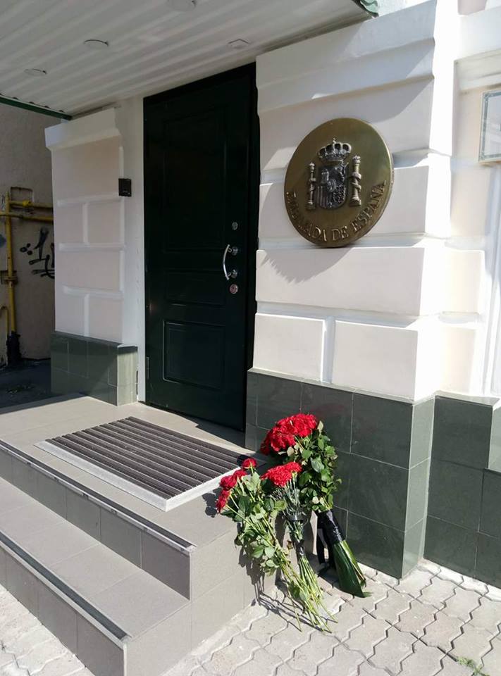 Москвичи и жители Санкт-Петербурга тоже несут цветы к испанским дипломатическим представительствам. Так, на Большую Никитскую в столице РФ, где расположено посольство Испании, принесли цветы и зажгли свечи.