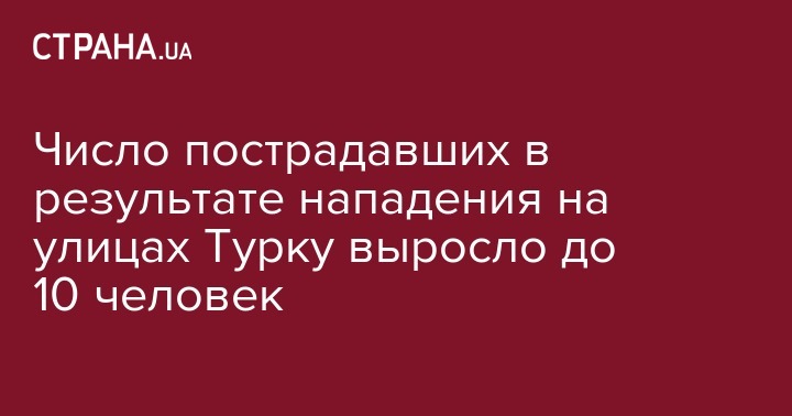 Число пострадавших после нападения вооруженного ножом мужчины в финском городе Турку увеличилось до десяти. Об этом сообщает "Интерфакс Украина".