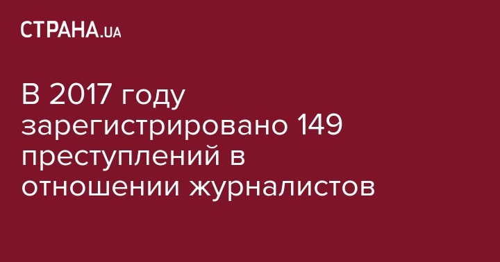 С января по июль 2017 года, по данным Генеральной прокуратуры Украины, зарегистрировано в общем 149 уголовных производств в отношении преступлений, совершенных в отношении работников средств массовой информации.