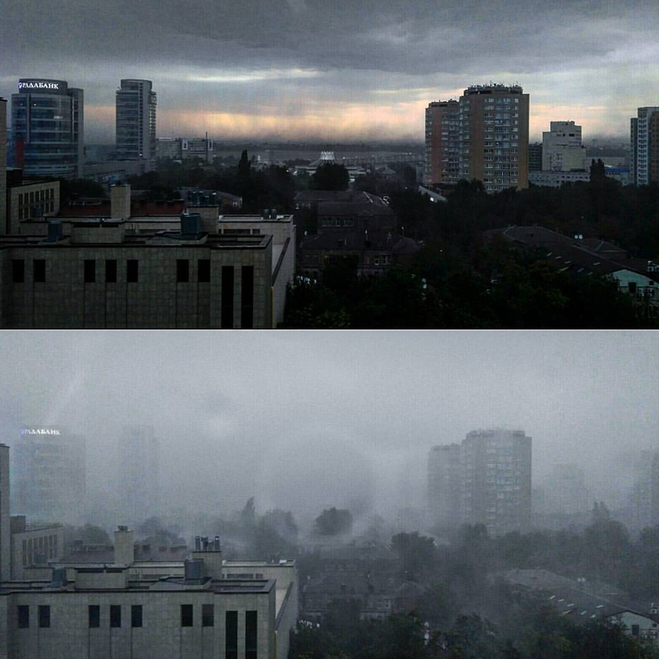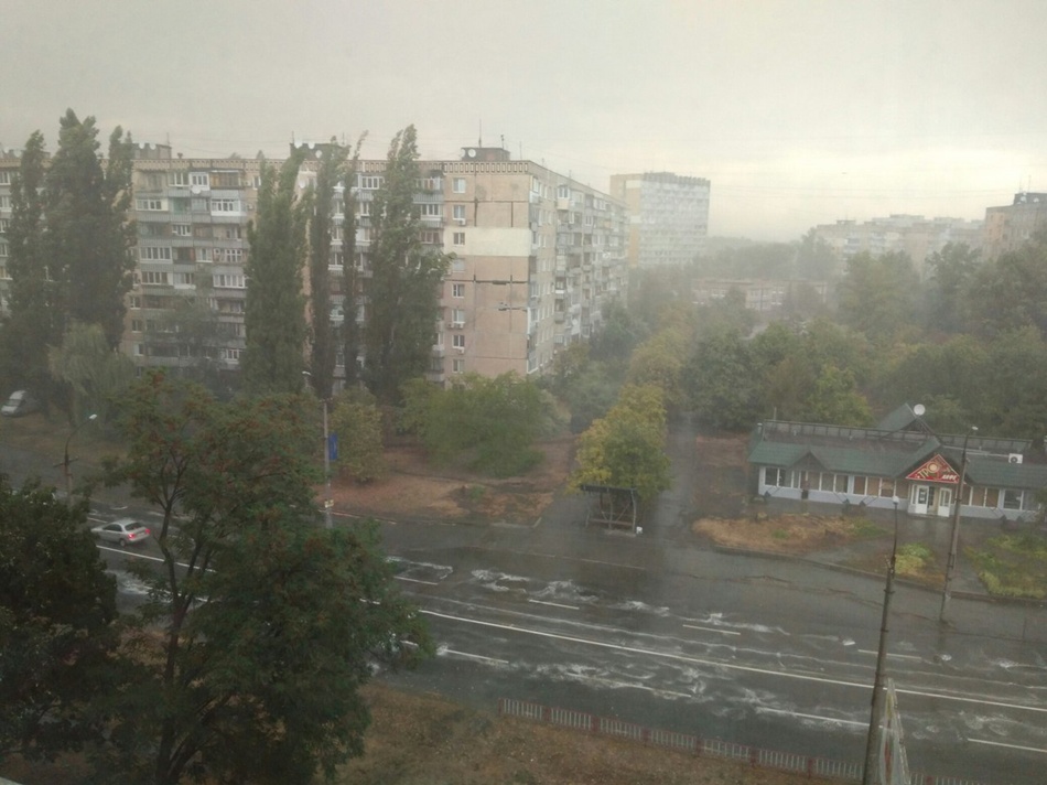 Сегодня, 22 августа, на Днепр в течении нескольких минут обрушился мощный ливень со шквальным ветром.
