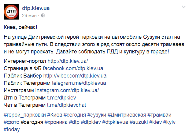 Во вторник, 22 августа 2017 в Киеве появился еще один "герой парковки". Водитель джипа Suzuki припарковался прямо на трамвайных путях, чем полностью заблокировал движение общественного транспорта.