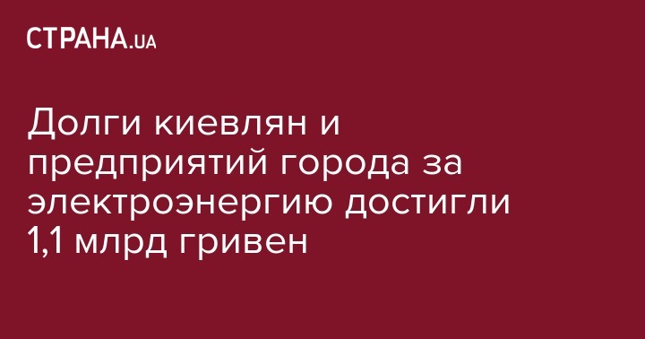 Долги киевлян и предприятий города за электроэнергию достигли 1,1 млрд гривен