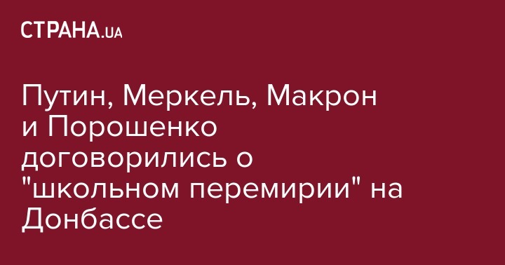Лидеры стран "нормандской четверки", в которую входят Германия, Россия, Франция и Украина, поддержали идею введения "школьного перемирия" на Донбассе.