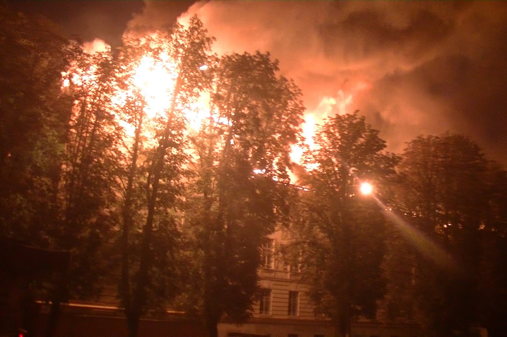 По предварительной информации, под угрозой обвала находятся перекрытия третьего этажа, наиболее поврежденные и огнем и водой.