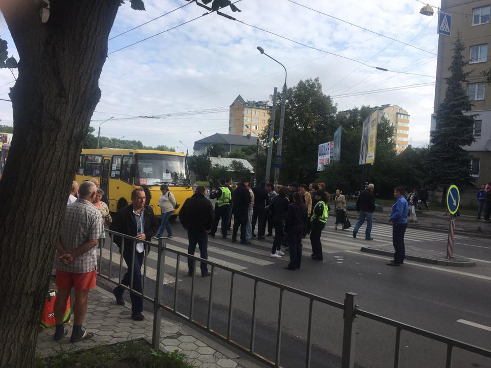 Так, на улице Галицкой, за мостом через Быстрицу, около двух десятков работников завода "Княгинин" непрерывно ходят по пешеходному переходу. Таким образом люди требуют, чтобы их допустили к работе на заводе и выплатили заработную плату.