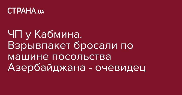 По сообщениям очевидцев, взрыв у здания Кабмина в Киеве произошел из-за того, что по машине посольства Азербайджана бросили взрывпакет. Об этом пишет активист Виталий Грузинов на странице в Facebook.