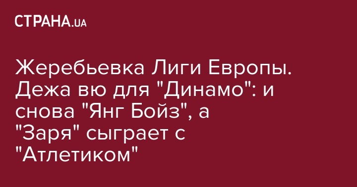 Жеребьевка Лиги Европы. Дежа вю для "Динамо": и снова "Янг Бойз", а "Заря" сыграет с "Атлетиком"
