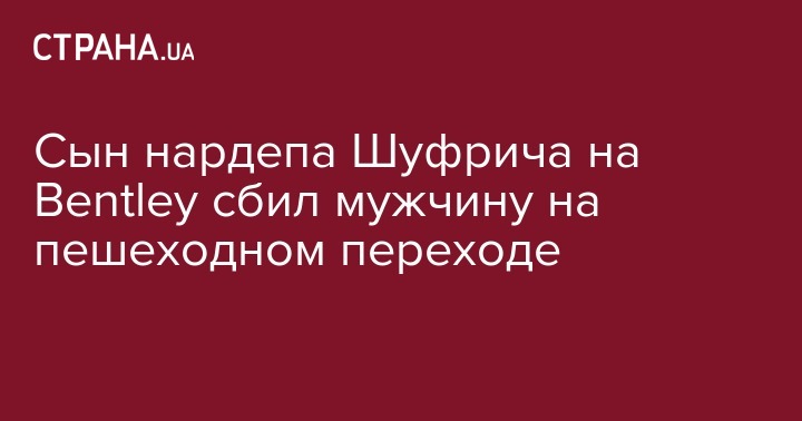 В субботу вечером, 26 августа, сын народного депутата Нестора Шуфрича сбил мужчину на пешеходном переходе на автомобиле Bentley, пострадавший с многочисленными травмами госпитализирован. Об этом сообщила пресс-служба Нестора Шуфрича на странице в Facebook.