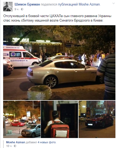 Тем временем, как пишут в соцсети, первую помощь мужчине оказал сын главного раввина Украины Мендель . Об этом сообщает Шимон Бриман на своей странице в Facebook.