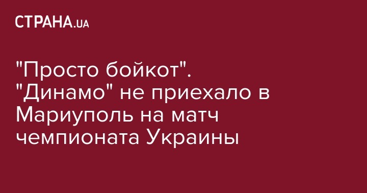 Футбольный клуб "Динамо" бойкотировал матч с ФК "Мариуполь" и не приехал в этот город. Об этом сообщает телеканал Футбол 1.