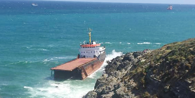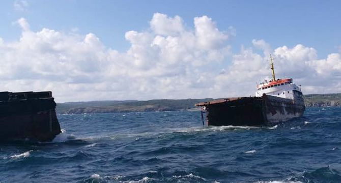У входа в пролив Босфор развалился на две части старый сухогруз, возивший сырье в Крым