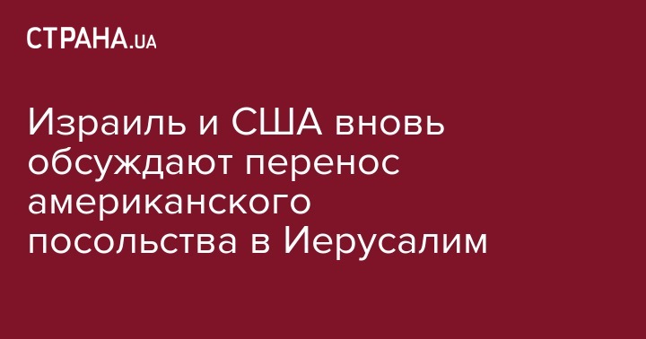 Израиль и США вновь обсуждают перенос американского посольства в Иерусалим