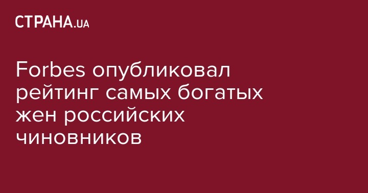 Журнал Forbes Woman составил рейтинг самых состоятельных жен российских госслужащих за 2016 год. Рейтинг размещен на сайте журнала.