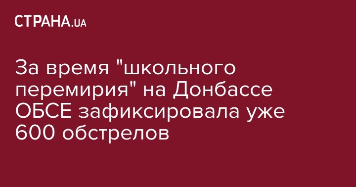 Первый заместитель председателя Специальной мониторинговой миссии ОБСЕ в Украине Александр Хуг рассказал, что по состоянию на 28 августа, миссия задокументировала более 600 нарушений режима прекращения огня с момента заключения так называемого "школьного перемирия".