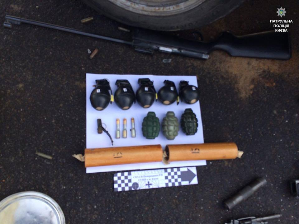 "Утром 27 августа патруль прибыл на вызов о ДТП с пострадавшими на мосту Патона. Там полицейские обнаружили автомобиль ЗИЛ и авто ижевского автомобильного завода. Водителя последнего авто госпитализировали в реанимацию. Полицейские внимательно осмотрели его авто и заметили в открытом багажном отделении целый арсенал оружия: 8 предметов, похожих на пистолеты и винтовку, 7 гранат, которые могут оказаться боевыми, 2 дымовых шашки, 4 ножи и огромное количество отстрелянных гильз," - говориться в сообщении.