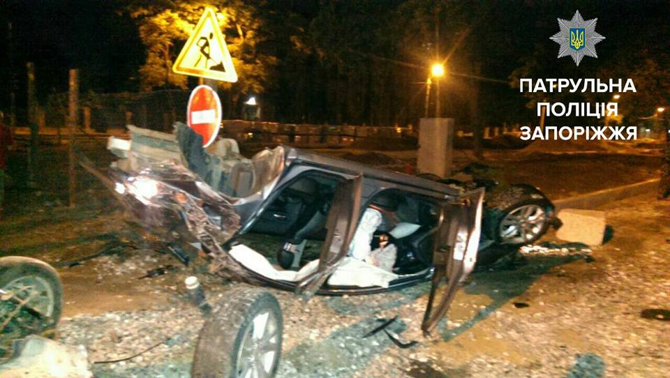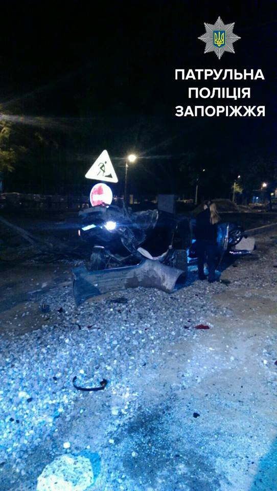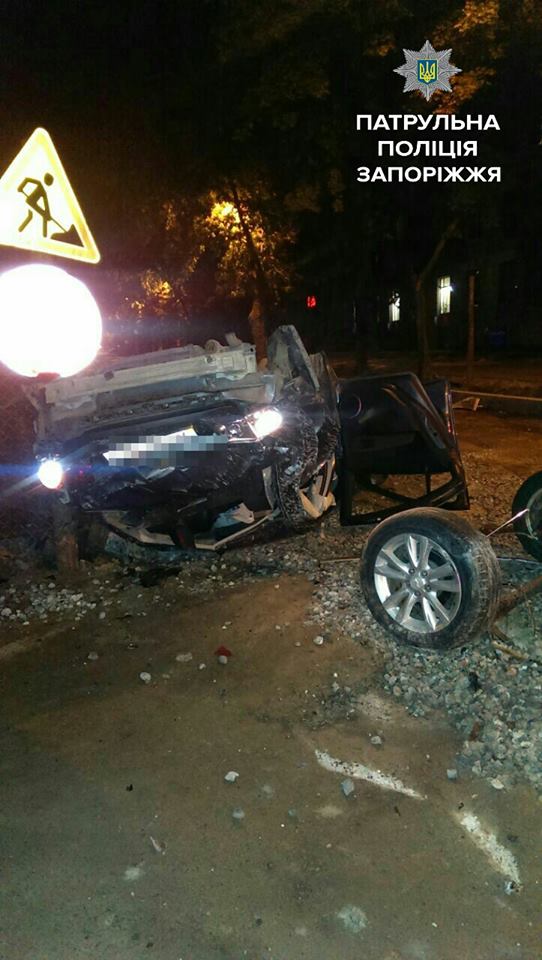 В Запорожье Chevrolet с пьяным водителем разнесло вдребезги об бетонную стену