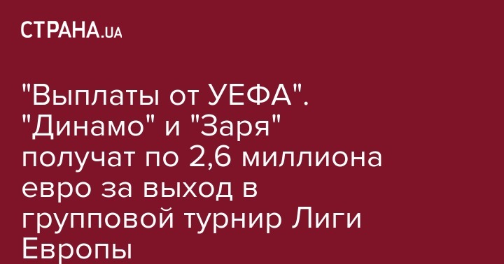 "Выплаты от УЕФА". "Динамо" и "Заря" получат по 2,6 миллиона евро за выход в групповой турнир Лиги Европы