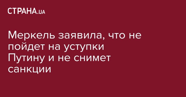 Меркель заявила, что не пойдет на уступки Путину и не снимет санкции