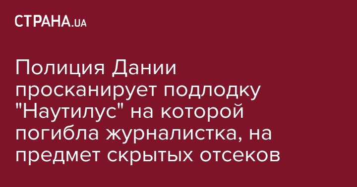 Полиция Дании просканирует корпус подводной лодки "Наутилус", где погибла журналистка Ким Валль, на предмет скрытых отсеков. Об этом сообщает "Европейская правда" со ссылкой на The Local.