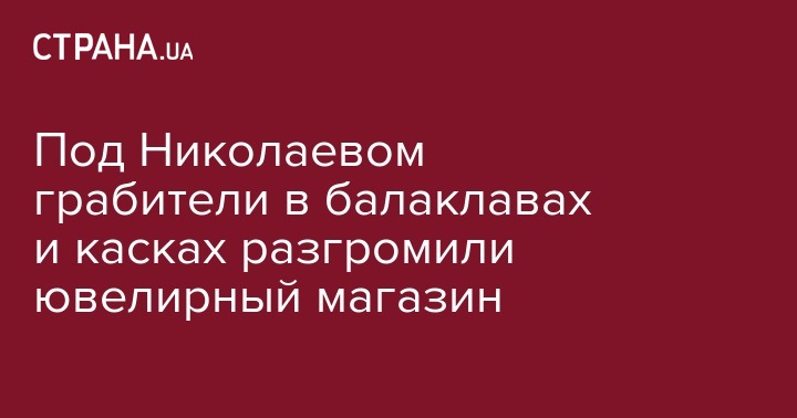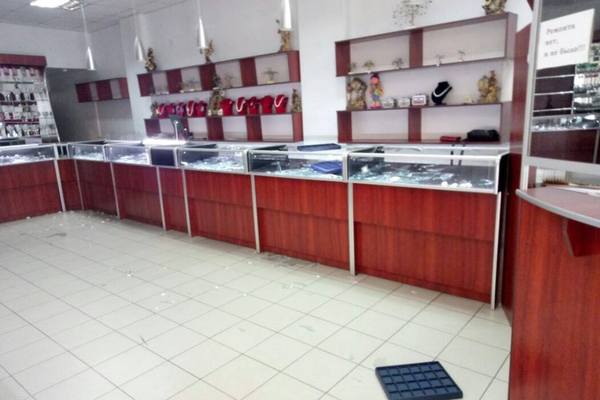 Во вторник, 29 августа, в райцентре Вознесенск трое вооруженных автоматами мужчин, лица которых были закрыты балаклавами, ворвались в помещение ювелирного магазина, разбили прикладами витрины и сгребли с них золотые драгоценности. Об этом сообщает пресс-служба Нацполиции Николаевской области.