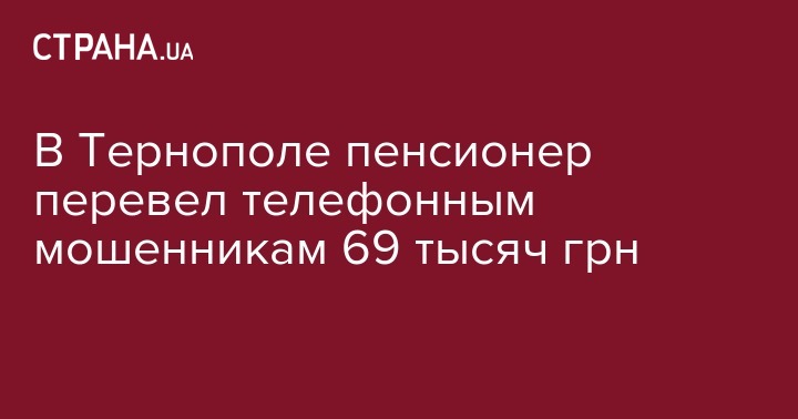 В Тернополе пенсионер перевел телефонным мошенникам 69 тысяч грн