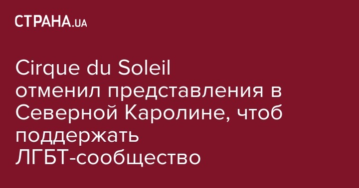 Всемирно известный Cirque du Soleil отменил ряд выступлений в штате Северная Каролина из-за закона, который ограничивает права ЛГБТ-сообщества. Об этом говорится на странице компании в сети Facebook.