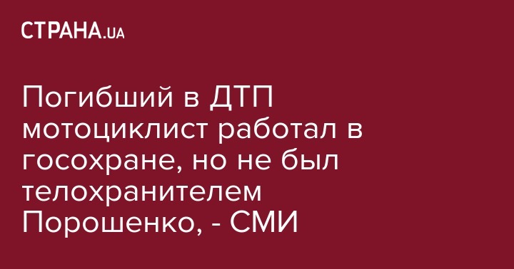 Погибший в ДТП мотоциклист работал в госохране, но не был телохранителем Порошенко, - СМИ