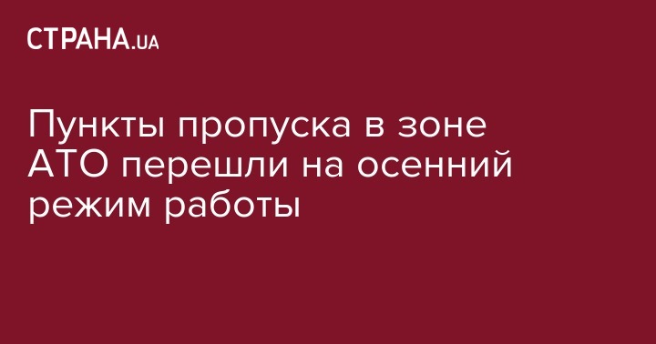 В зоне АТО с сегодняшнего дня, 1 сентября, контрольные пункты въезда-выезда переходят на осенний период работы, сокращая часы пропуска граждан. Смена режима работы анонсировалась ранее.