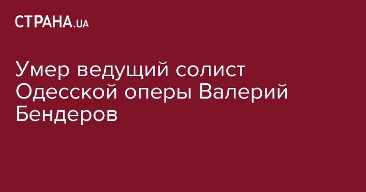 На днях умер заслуженный артист Украины и ведущий солист Одесской оперы Валерий Бендеров. Об этом сообщили в Одесском академическом театре оперы и балета, передает "Украинская Служба Информации".