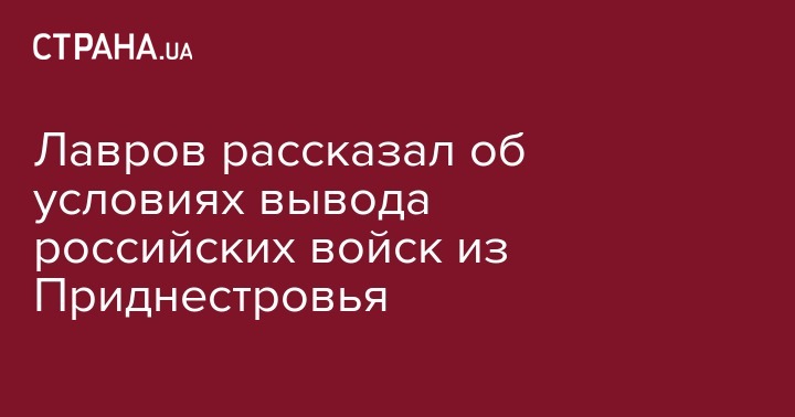 Россия выведет войска из Приднестровья только после создания соответствующих условий. Об этом сообщает ТАСС со ссылкой на заявление министра иностранных дел России Сергея Лаврова.