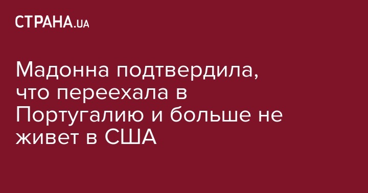 Популярная американская певица Мадонна подтвердила, что переехала из США жить в Португалию. Об этом она написала в Instagram.