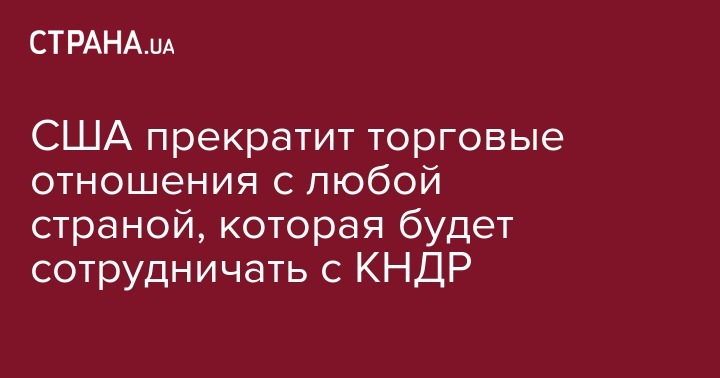 Соединенные Штаты Америки рассматривают возможность прекращения торговых отношений с каждой страной, которая сотрудничает с Северной Кореей. Об этом заявил президент США Дональд Трамп в своем Twitter.