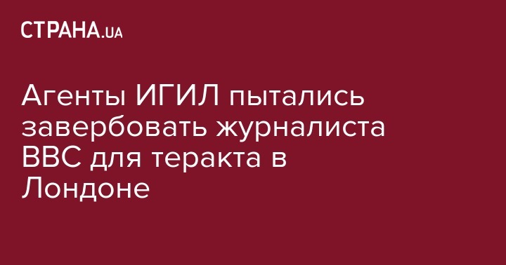 В Великобритании боевик террористической организации "Исламское государство" пытался завербовать корреспондента ВВС, чтобы склонить его к нападению на лондонском мосту. Об этом пишет газета Guardian.