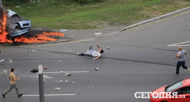 Кадры, напоминающие съемки каскадера, - последствия ДТП в Киеве Фото: kiev.segodnya.ua