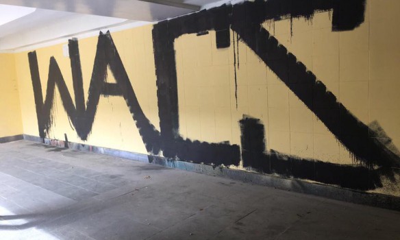 Неизвестные облили черной краской стены и потолок отремонтированном подземном переходе.