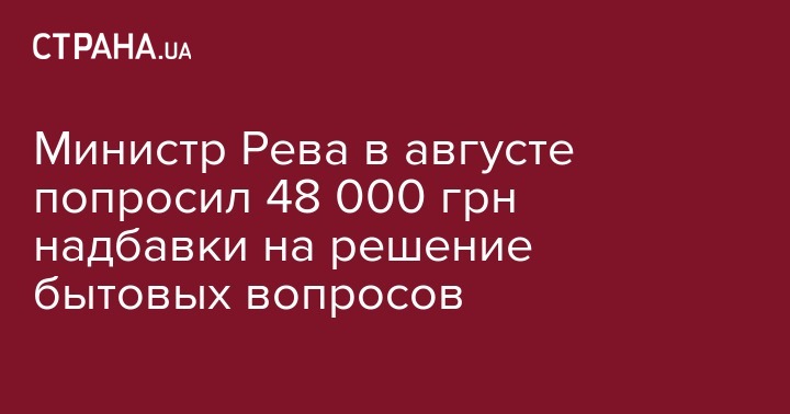 Министр Рева в августе попросил 48 000 грн надбавки на решение бытовых вопросов