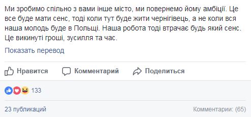 Он считает, что детям нужно объяснять, украинец должен быть счастлив в Украине. "Нужно проводить обучение с учителями, находить пути доступа к детям, вытягивать их из гаджетов. Нужно находить пути и вкладывать им, что они украинцы, они должны думать, что будет с твоей нацией через 50 лет. Если мы сознательные люди и украинцы, мы должны анализировать. Мы сделаем вместе с вами другой город, мы вернем ему амбиции. Это все будет иметь смысл тогда, когда здесь будет жить черниговец, а не когда вся наша молодежь будет в Польше. Наша работа тогда теряет смысл. Это выброшенные деньги, усилия и время", - резюмировал мэр Чернигова.