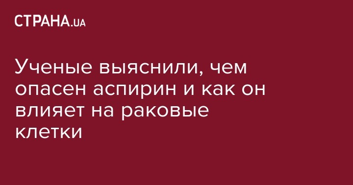 Ученые выяснили, чем опасен аспирин и как он влияет на раковые клетки