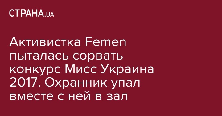 Как рассказала "Стране" лидер Femen Анна Гуцал, активистку пытался снять со сцены охранник мероприятия, однако вместе с девушкой упал с подиума в зрительный зал.