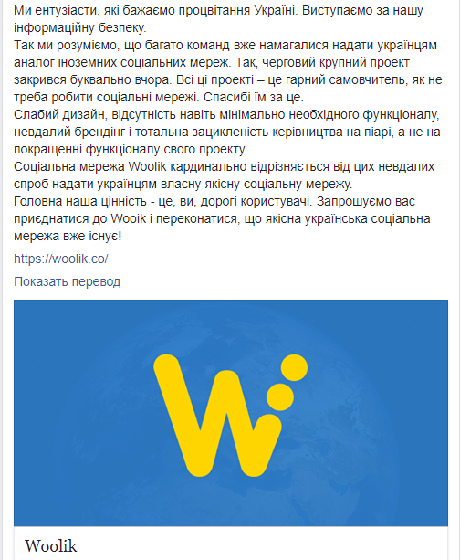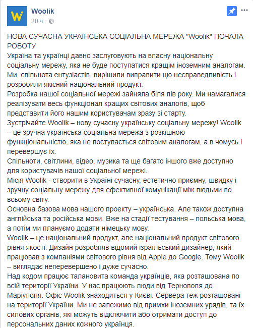 В Украине заявили о запуске новой национальной социальной сетиь, которая получила название Woolik. Об этом разработчики проекта сообщили в Facebook.