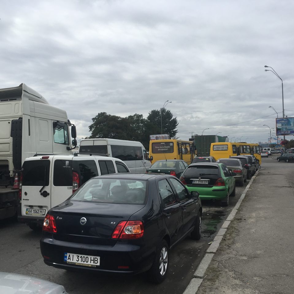 В Киеве в четверг, 7 сентября, авария парализовала движение на въезде в город у метро "Лесная". Об этом сообщает корреспондент "Страны" с места событий.