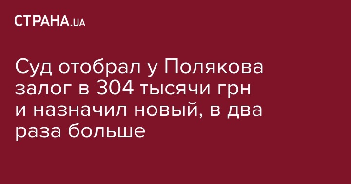 "Суд постановил ходатайство удовлетворить частично. Залог в 304 тысячи грн обратить в доход государства. Также применить к Полякову меру пресечения в виде залога в большем размере. Определить Полякову новый залог в размере 608 тысяч грн", - сказала Лазоренко.