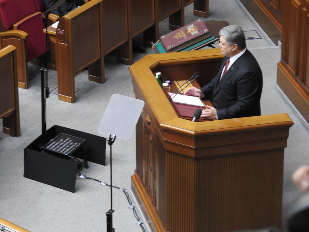 Президент Петр Порошенко читал с листа свое обращение к народным депутатам. Об этом сообщает корреспондент "Страны"